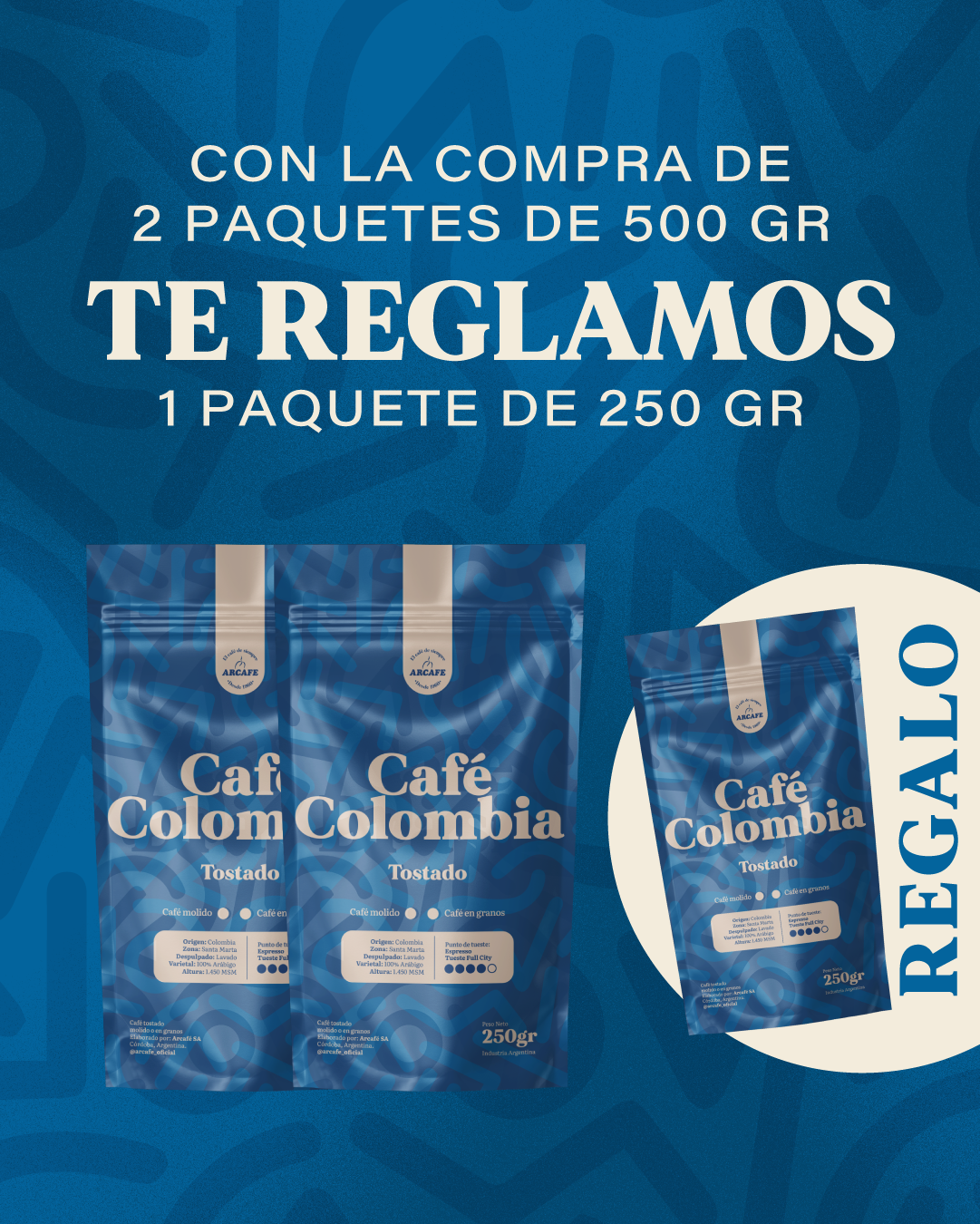 2 Paquetes de 500 Gr + 1 Paquete de 250 Gr de Regalo.
